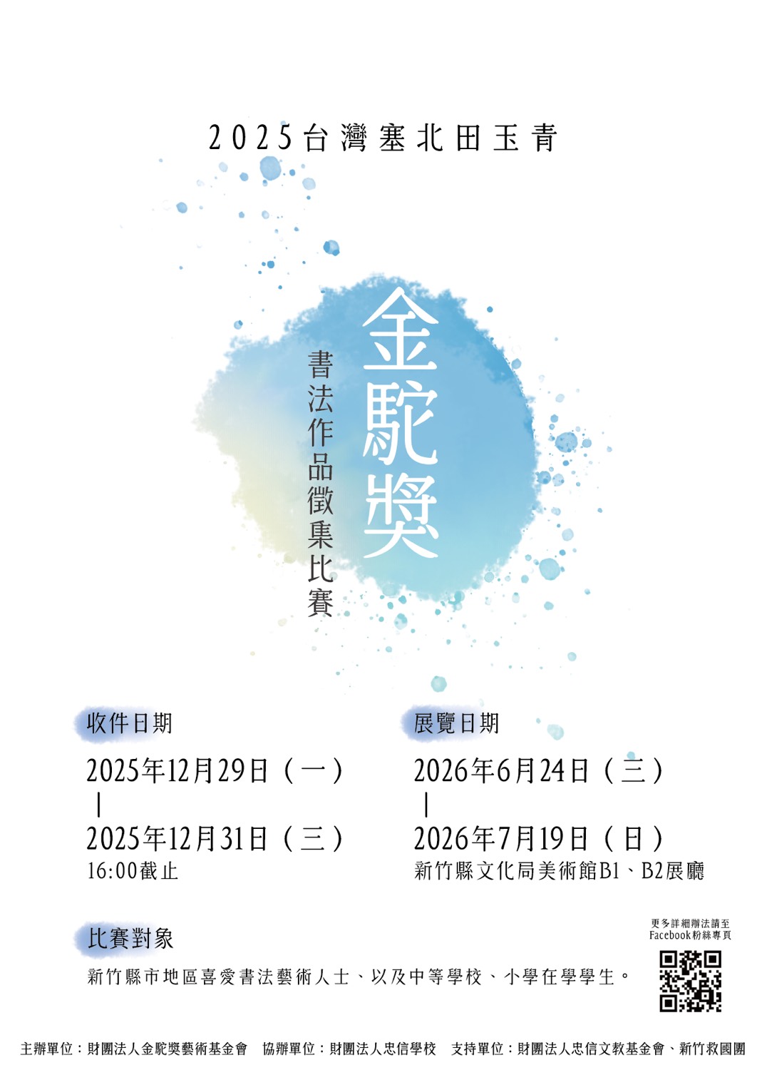 2.收件日期:2025年12月29日(星期一)至2025年12月31日(星期三)16:00時止。郵寄者以當日郵戳為憑,親送者以截止期限時間內送達忠信學校學務處活動組。